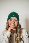 Ajoutez une touche de style avec notre bonnet à revers brodé vert et doré.